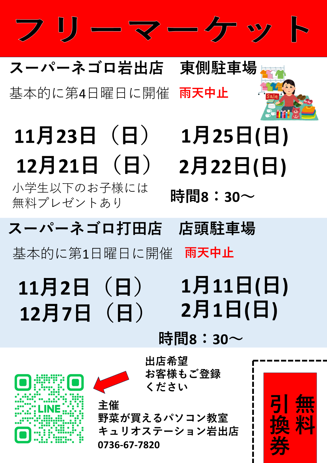 ようこそ!キュリオステーション岩出店主催 フリーマーケットのページへ